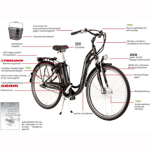 Mit abnehmbaren Einkaufskorb, Rahmenringschloss, äußerst stabilem Gepäckträger und Doppelständer, Ladegerät und Thurau -Qualitäts-Zertifikat einzigartig in dieser Preisklasse.